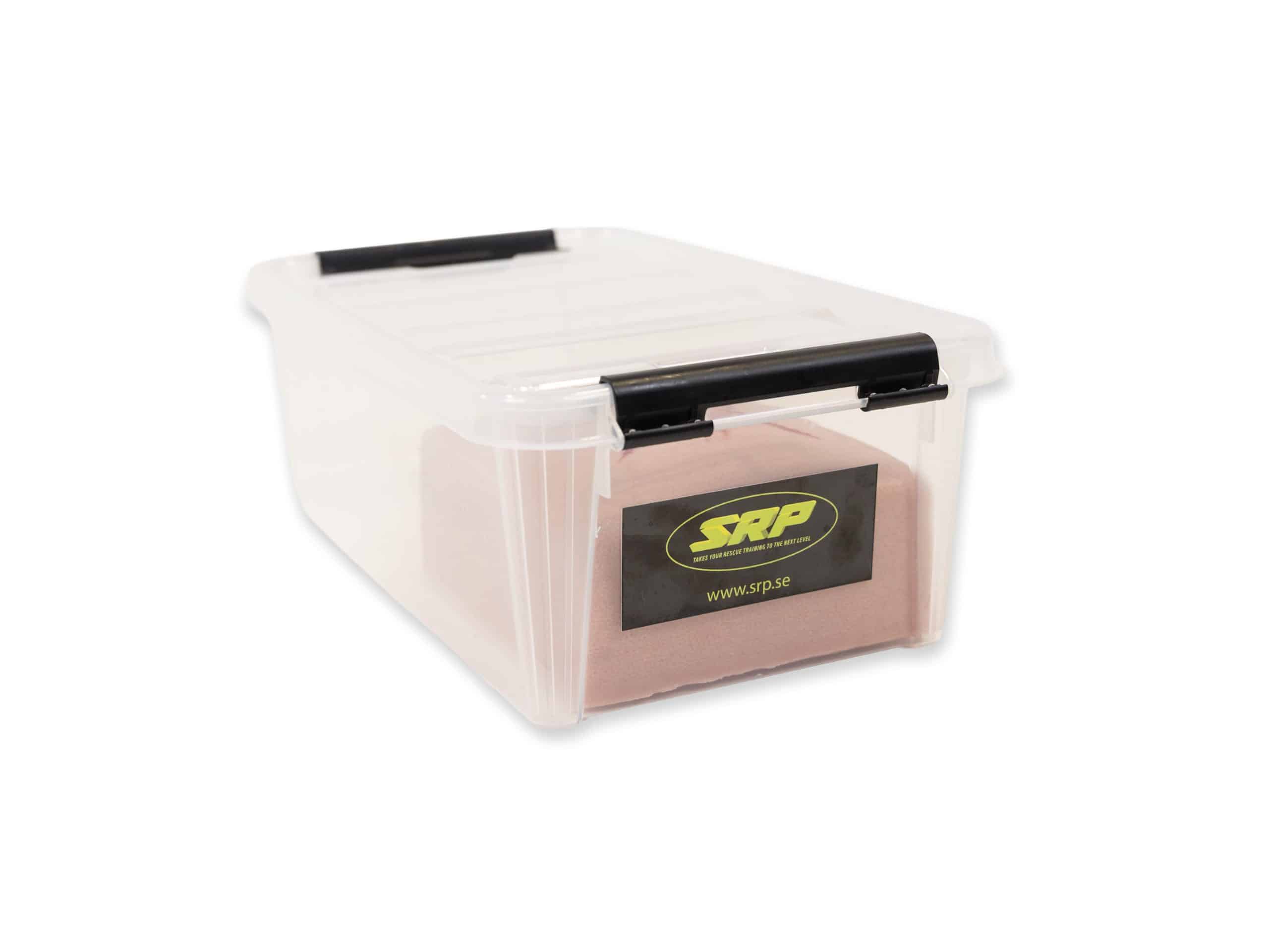 Malli on yhdistettävissä keinoveripumppuun suuren verenvuodon simuloimista varten erilaisilla paineilla. Letkun halkaisija 6mm. Mukana pestävä muovilaatikko säilytystä ja harjoittelua varten.