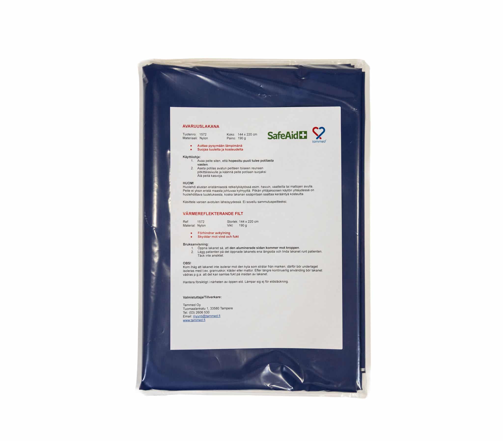 Avaruuslakana tai avaruuspeitto toimii siten, että se heijastaa potilaan ruumiinlämmön tehokkaasti takaisin potilaaseen, jolloin lämpö ei pääse karkaamaan. Tämä pelastuspeite säilyy taiteltuna pienikokoisena ja avattuna sen koko on 144 x 220 cm, jolloin avaruuslakana peittää kookkaammankin potilaan.